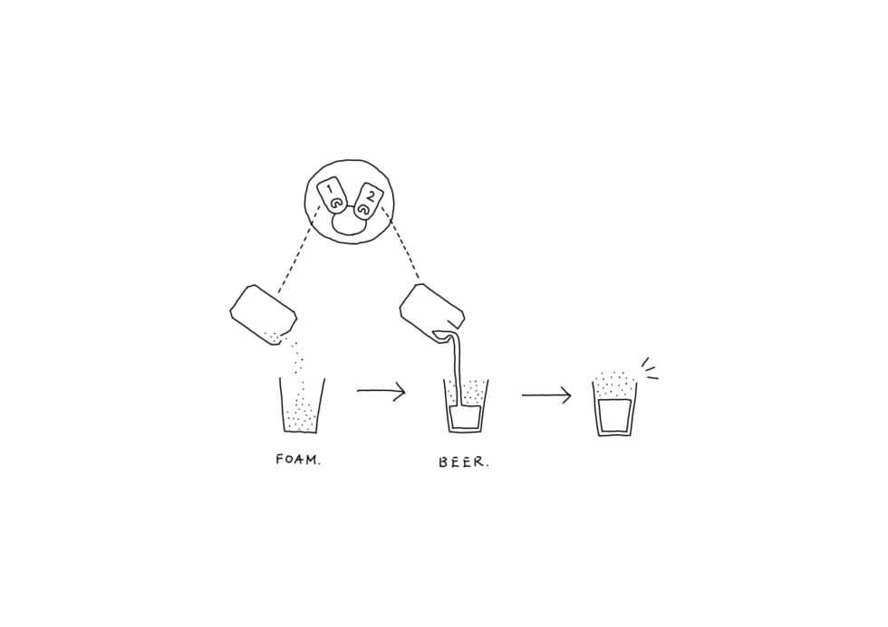 Nendo discovered from their study that the pressure is concentrated in the narrow opening if the pull tab is not fully opened. So what happens when pouring is the area of the beer in contact with the lid increases and this facilitates the bubble formation. The pull tabs on Nendo’s Foam Can, when not opened, looks like a wonky-looking emoji.
