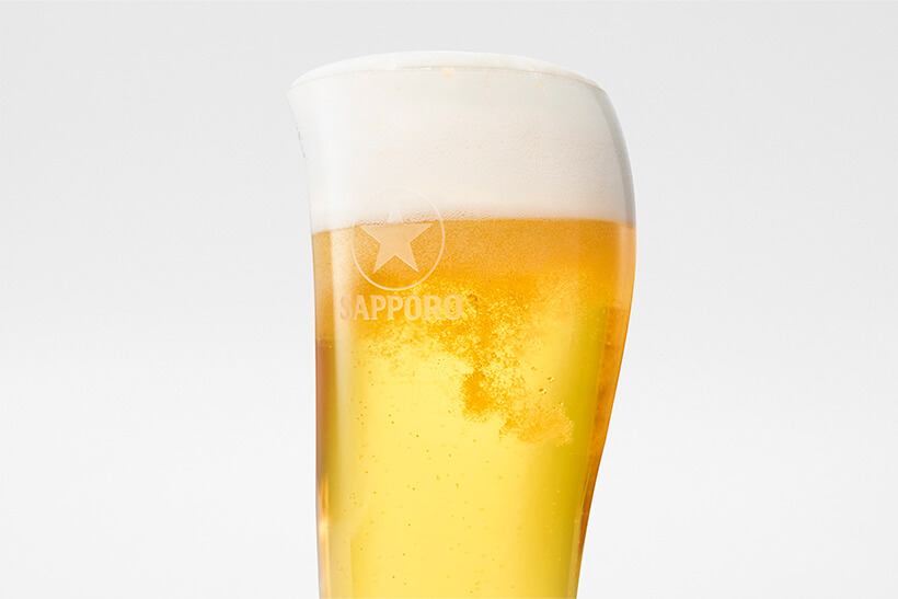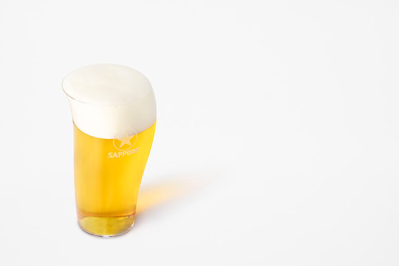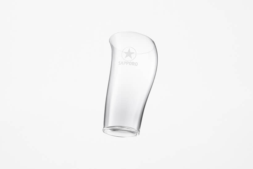 KURO LABEL is known for its multiple distinct flavor profiles that takes your palate through a journey of complex flavors and pleasures in one drink. It starts with the “first sip”, the “middle”, and ends with the “last sip”. This glass has three different mouthfeels to maximize the richness and aroma of the beer: the front and back features a typical straight side and the left side dips into a curve while the right protrudes into a bulbous shape to create an asymmetrical figure.