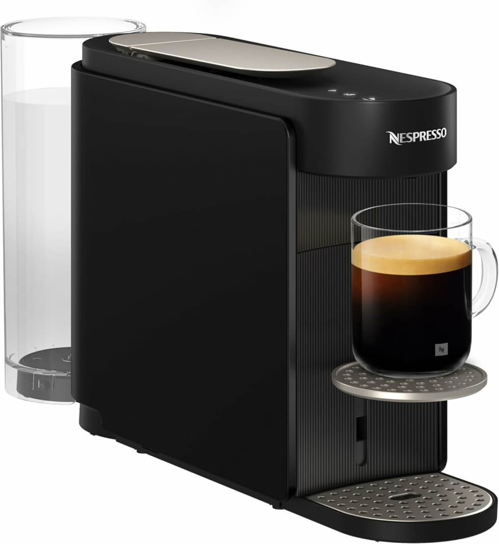 Moreover, the Vertuo Up features a large multi-position water tank for minimal refills. What makes it stand out from the Original machines is its brewing method. Vertuo machines use a centrifusion brewing technology to deliver a signature velvety coffee crema. It also supports a wider range of capsule sizes and coffee styles.