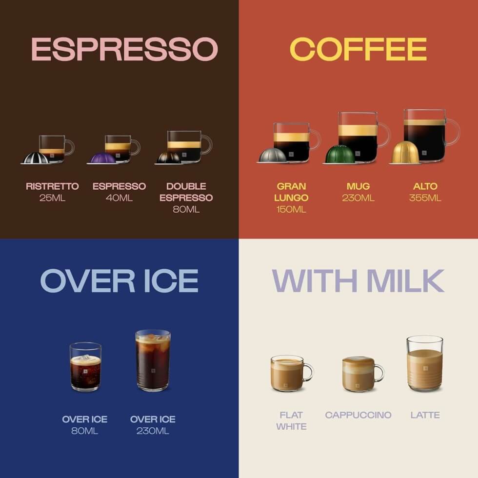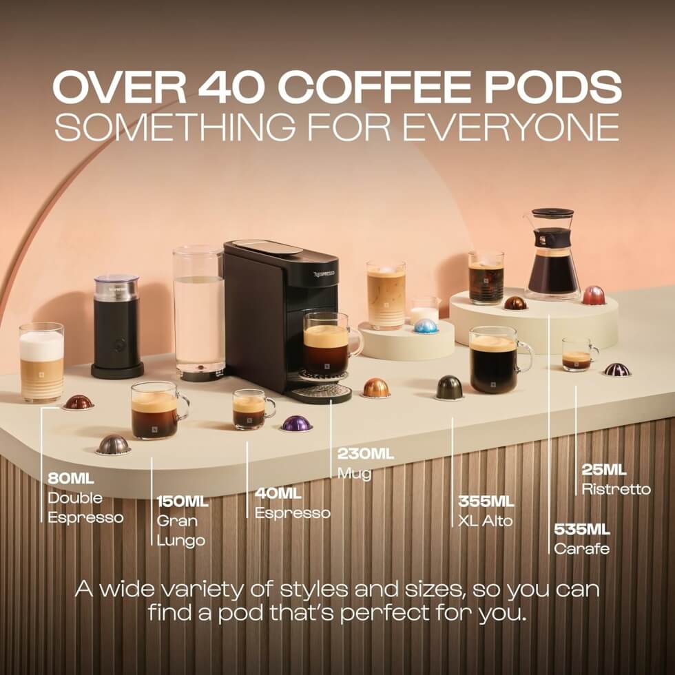 Meanwhile, the Original machines utilize pressure-based brewing technology and deliver a vast array of high- quality espresso and lungo capsules. A welcome set includes 12 Vertuo capsule selections to kickstart your coffee brewing experience.