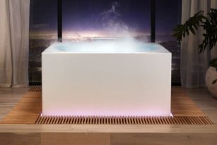 Kohler's Stillness Bathtub creates the perfect relaxing ambiance with the combination of water, steam, aroma, and lighting all through voice commands.