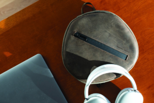 The exterior of the Waterfield AirPods Max Shield Case is crafted out of full-grain leather with a zippered front pocket and back mesh pocket