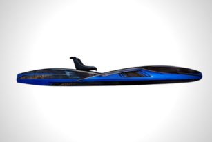 The Apex Watercraft TYR uses carbon fiber for lightweight construction and has a swivel chair for ease in mobility that does not require turning the hull.