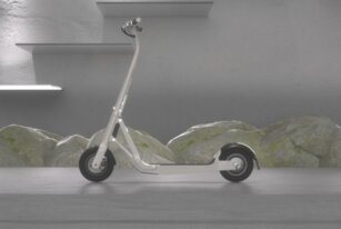 For additional safety, LAVOIE outfits the Series 1 electric scooter with a triangular headlight, brake light, and side lights for low-light visibility.