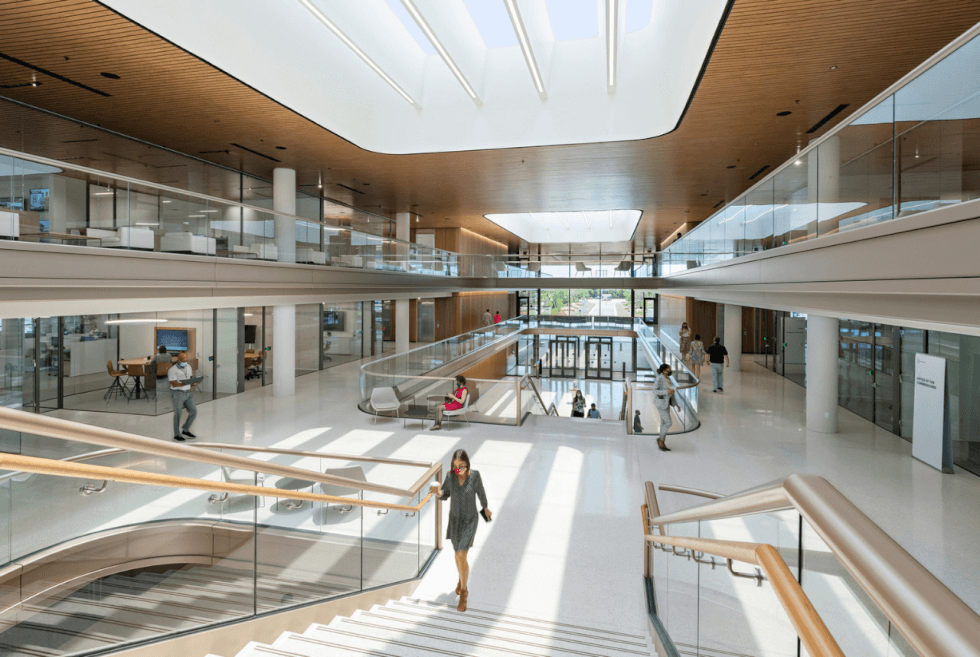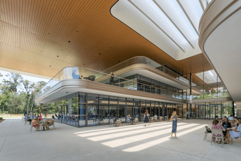 Each building bay interconnects via 20-foot-wide bridges which mean foot traffic never slows down to a crawl here. Sustainability also shows with the photovoltaic panels on the roof. Moreover, the PGA TOUR HQ does not allow smoking on campus to ensure a high standard of air quality. Finally, there are recycling facilities around the site as well.