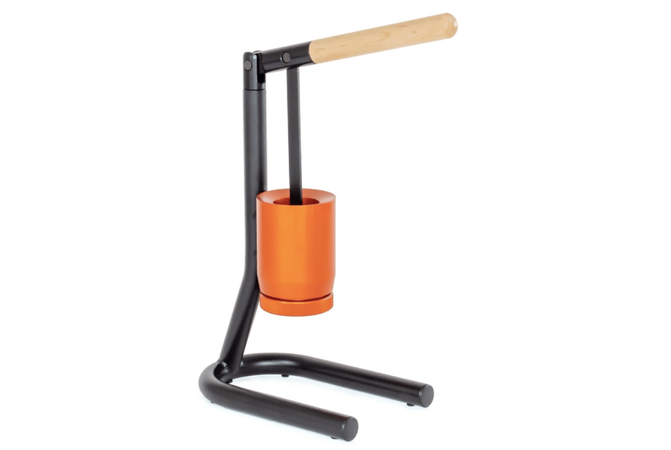 The body and piston are crafted out of precision-machined aluminum. For the frame, Newton Espresso is using tubular steel with a black powder coating with enough clearance for most cup sizes. The Brua is available in orange or black color options.
