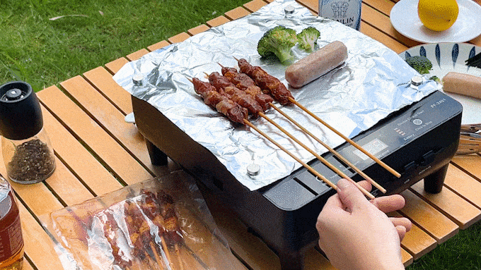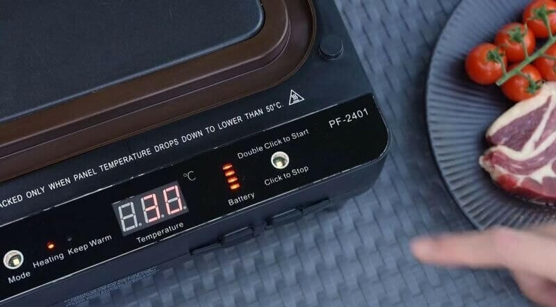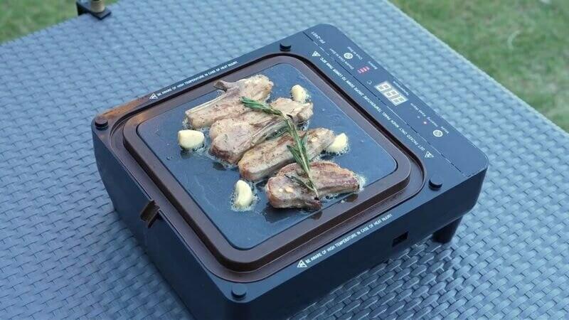 It runs on a 22.2V 18Ah lithium battery pack that supports up to two hours of continuous cooking or grilling on a single charge. It heats up to 165℃ (329°F) in three minutes after being turned on so you can start cooking and enjoy hot meals in no time.