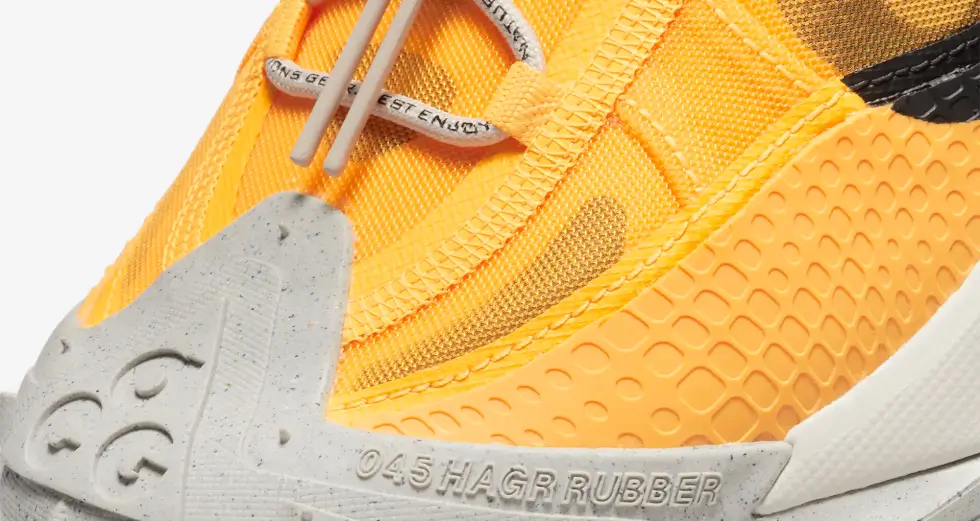 This revitalized version also boasts bold ACG branding on the side panels and features a React foam cushioning in the midsole as opposed to the original’s REACT + FLYPLATE cushioning system. The large bike tire-inspired lugs on the outsole that extend into the side toes deliver all the traction you need to keep you rooted to the ground no matter the adventure.