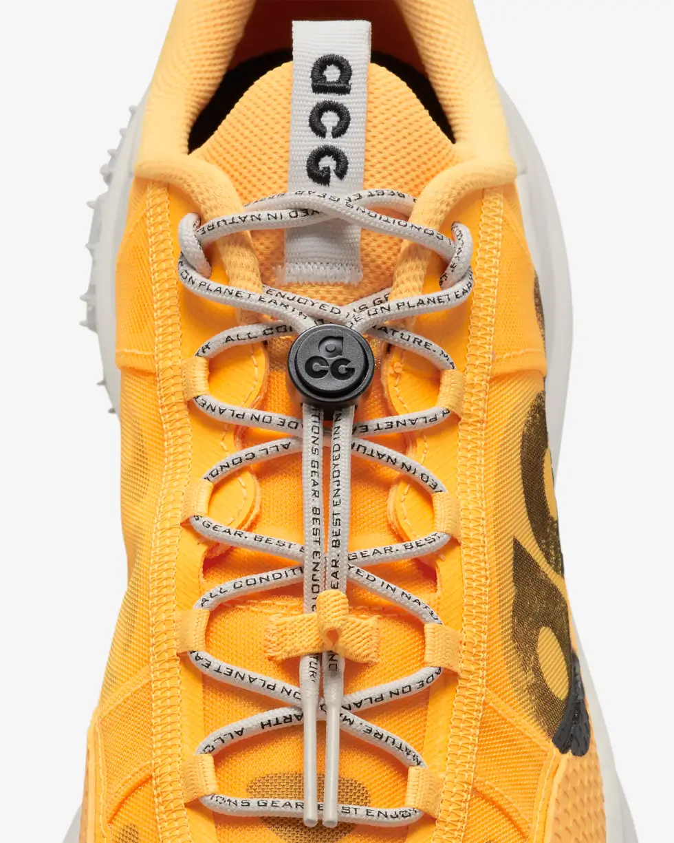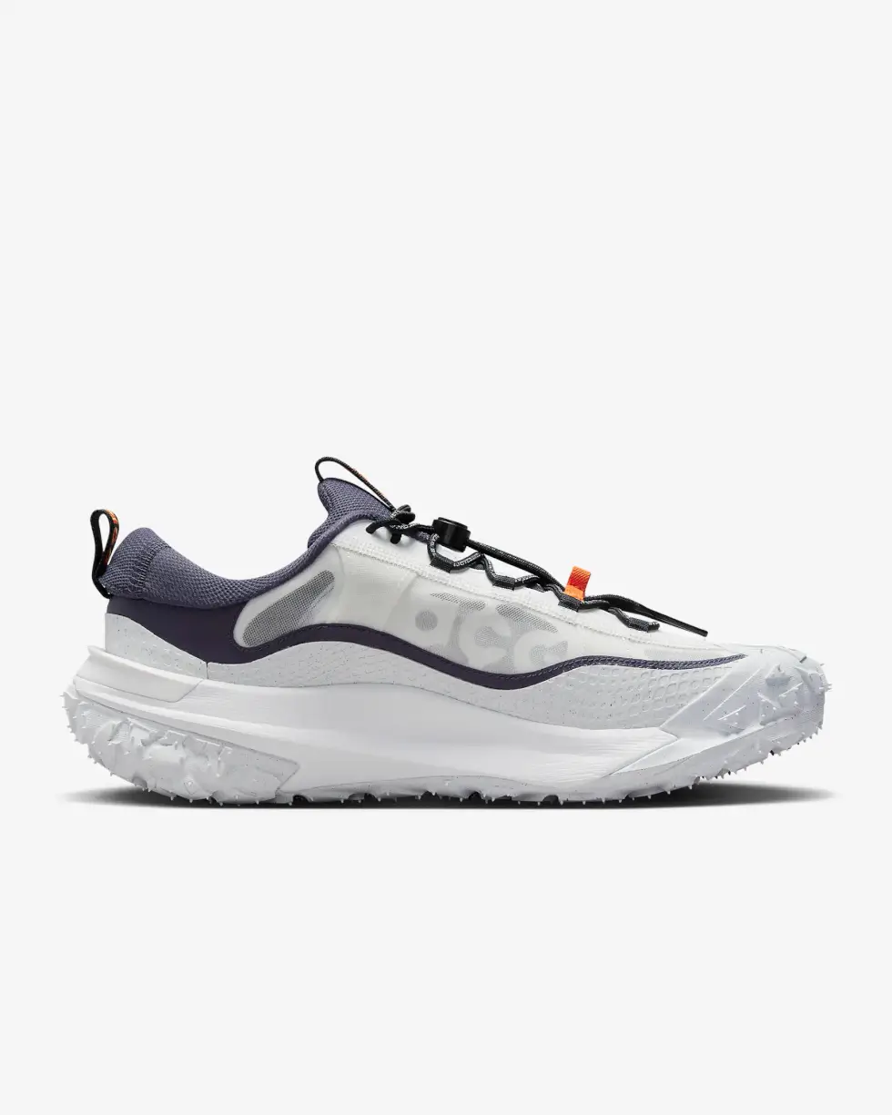 A semi-gusseted tongue keeps debris away from the ACG Mountain Fly 2 Low’s interior, while a lace toggle helps users make adjustments with ease. Support and cushioning is provided by the foam midsole with a lightweight plate which extends from the heel to the ball of your foot. Finally, reliable traction and grip come from the rugged “crag-ready” outsole inspired by mountain bike tires.
