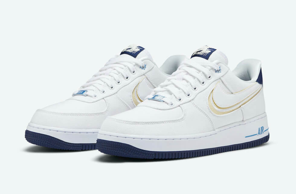The best part is the tongue tags which show the button inputs Daigo did to successfully parry all of the hits from Justin Wong’s super move and snag the win. The Air Force 1 Premium White/Fossil Blue sports a white midsole with the “AIR” badging in light blue and dark blue outsoles.
