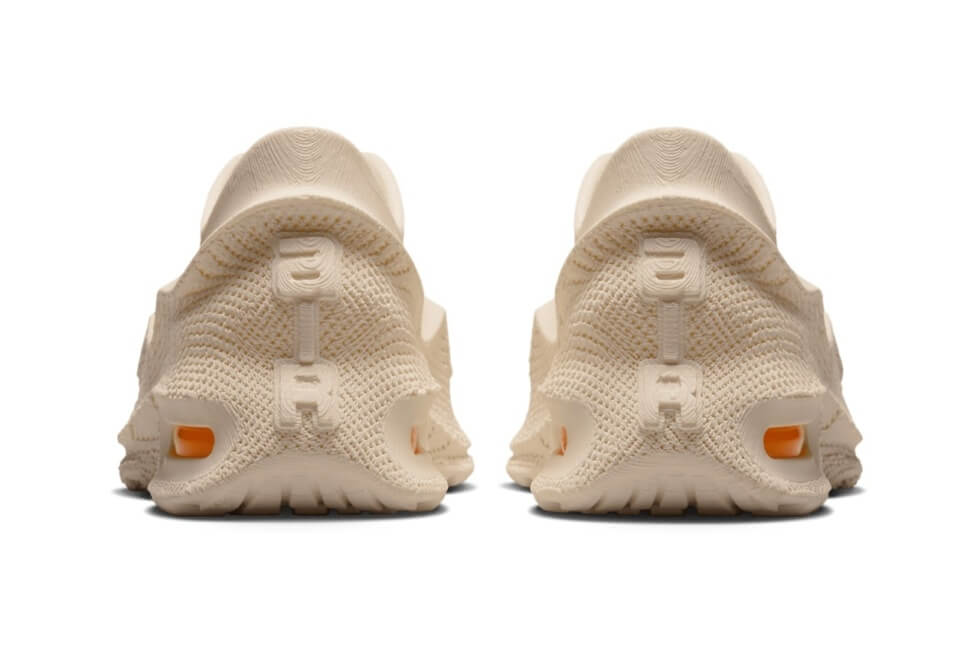 Specifically, the official colorway is Oatmeal/White/Total Orange. Zellerfeld shares its 3D-printing expertise to turn this striking silhouette into reality. The contrasting patterns of the upper, midsole, and outsole are only achievable via precision digital molding. Overall, the seamless construction is a distinctive aesthetic.