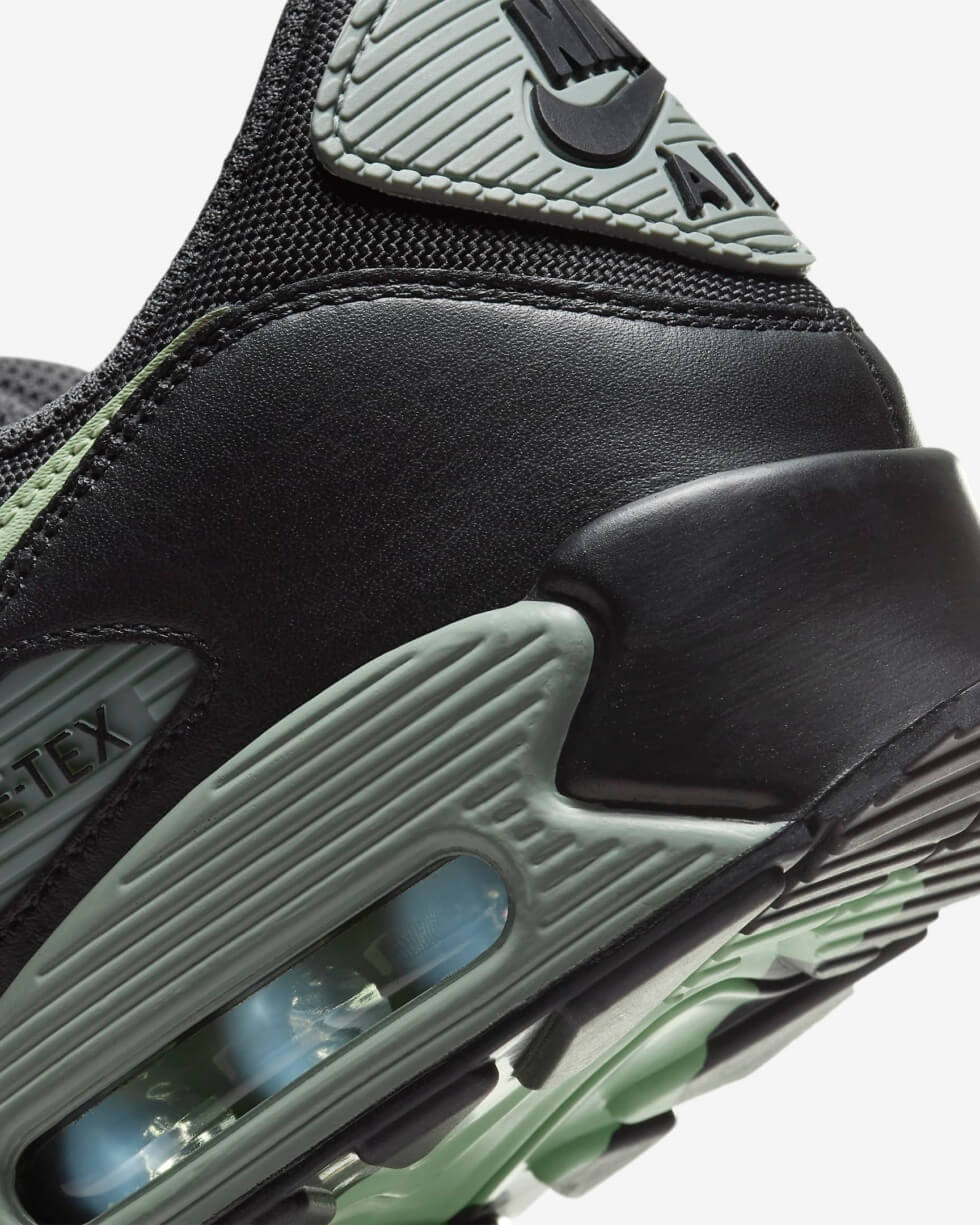 The upper is crafted out of GORE-TEX and mesh for comfort along with weather-resistant properties. Nike then adds a combination of leather and synthetic overlays to further define the sporty stance of the series. Your Air Max 90 GORE-TEX benefits from the Air unit slotted right underneath the heel section for top-notch cushioning.