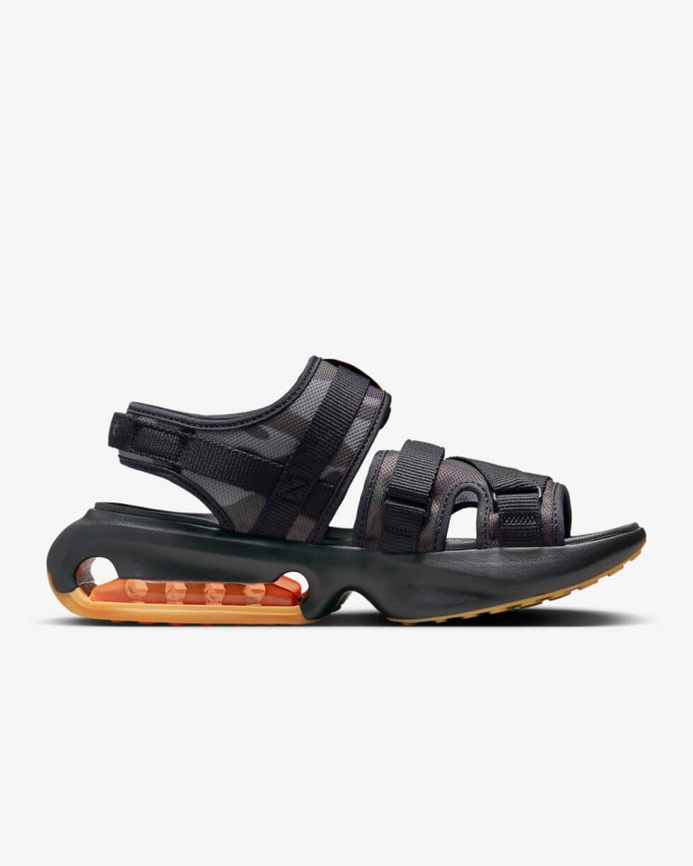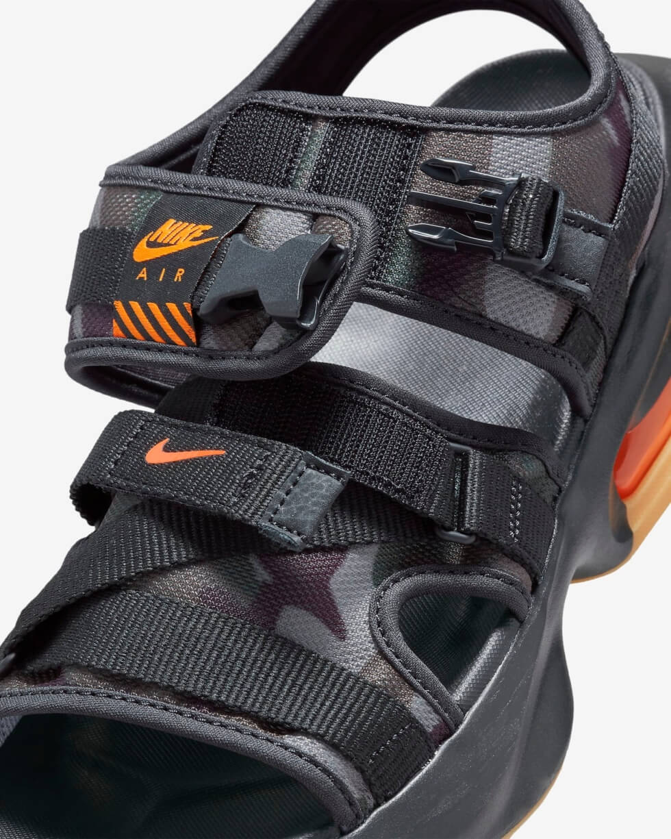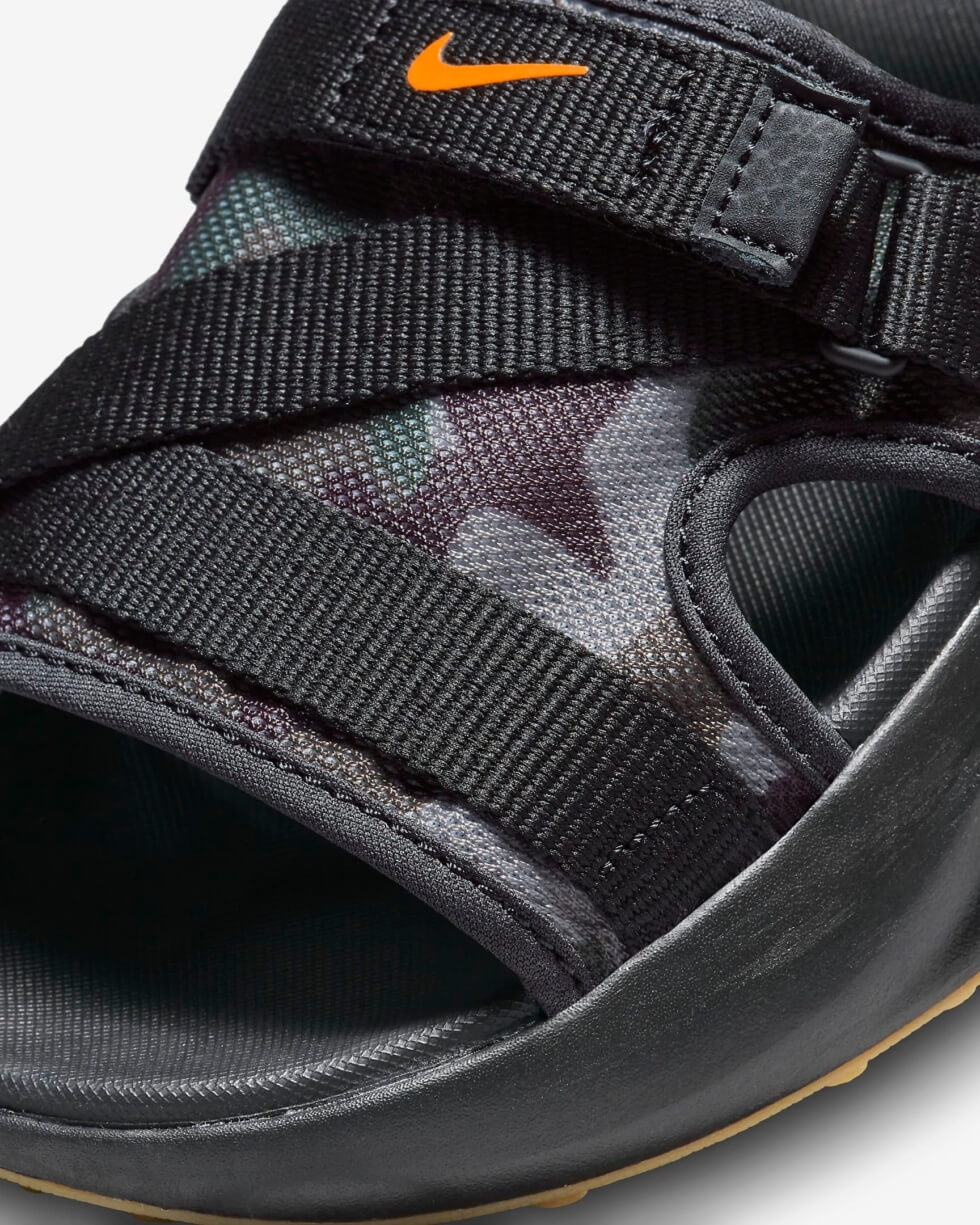 Listed as Black/Gum Light Brown/Cargo Khaki/Vivid Orange, the shades are predominantly dark with just enough contrast from the vibrant accents. Furthermore, the interior of the Air unit stands out for its translucence. Breathable synthetic textile forms the upper alongside webbing straps and adjustable buckles to dial in just how snug you want it.