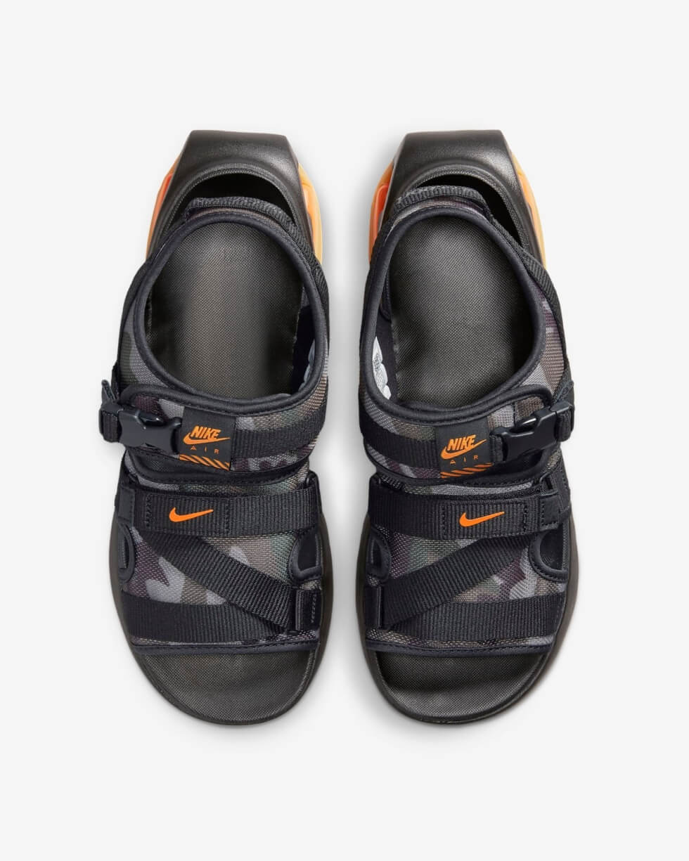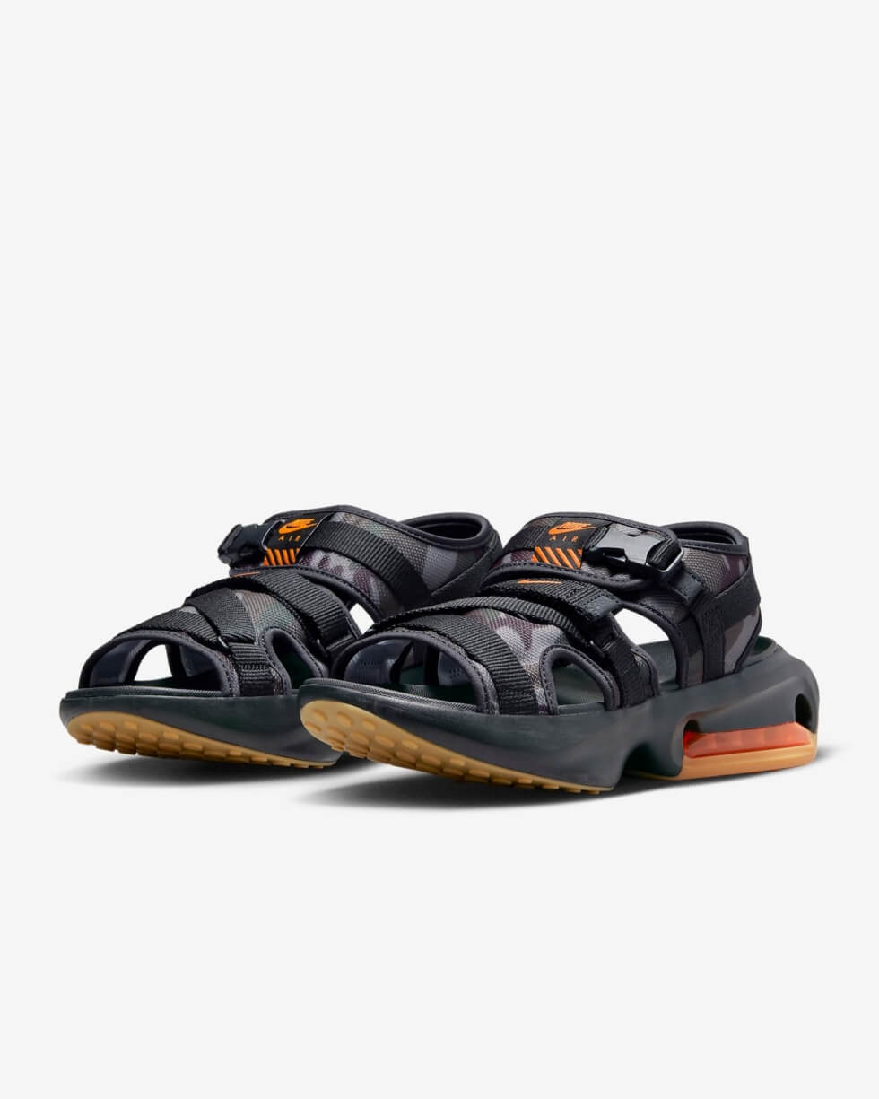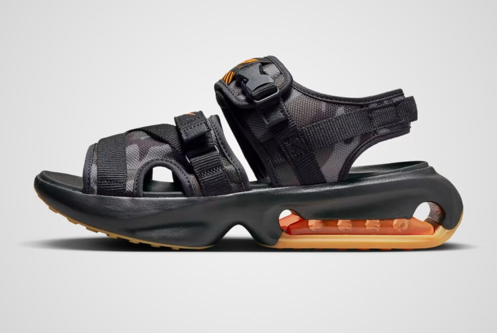 Listed as Black/Gum Light Brown/Cargo Khaki/Vivid Orange, the shades are predominantly dark with just enough contrast from the vibrant accents. Furthermore, the interior of the Air unit stands out for its translucence. Breathable synthetic textile forms the upper alongside webbing straps and adjustable buckles to dial in just how snug you want it.