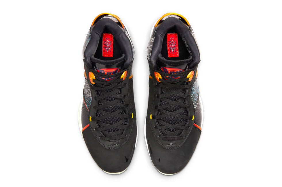 The colorway of these kicks is predominantly black but also sports accents in various colors. A dark upper uses nubuck and patent leather with a mix of synthetic materials. Given that it’s a tie-in with Space Jam: A New Legacy, there are elements themed around the film.