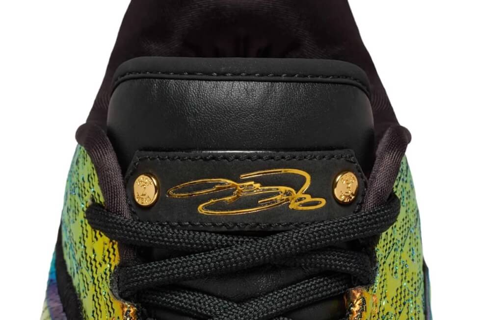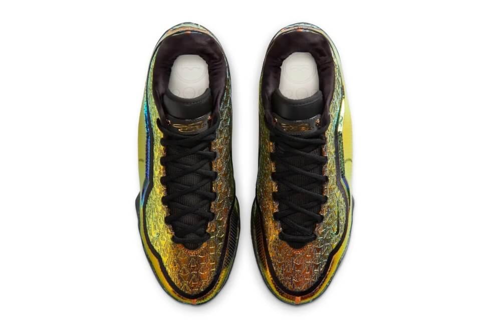 To make it even more special, Nike applies the dazzling golden finish via a vapor deposition process. A Swoosh logo is visible near the forefoot on the medial side. Meanwhile, a crown emblem occupies the midfoot area at the lateral flank of the LeBron XXIII “Uncharted” sneakers.