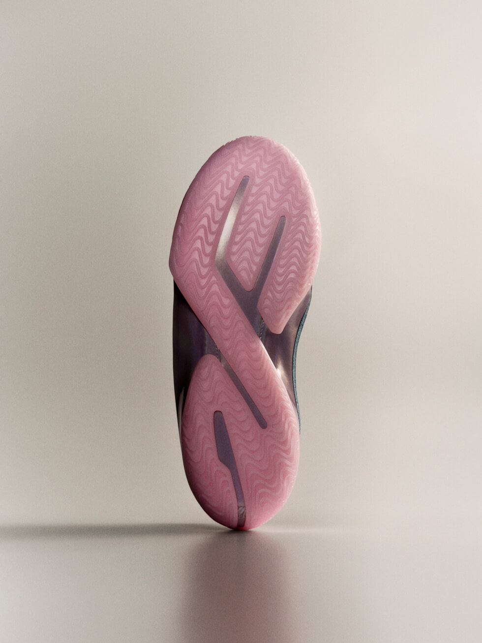 This variant is reportedly a tribute to James’ 40,000 points scored in a regular season. We have a sleek silhouette that features perforated leather and synthetic materials as the primary makeup of the upper. Decorative diamond patterns adorn the mesh textile, while an embroidered outline creates a separation between the lower section.