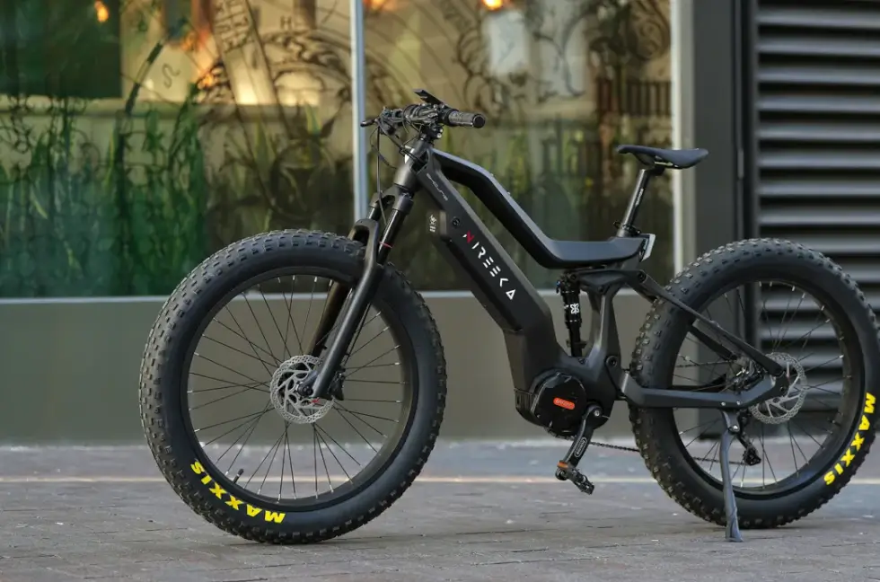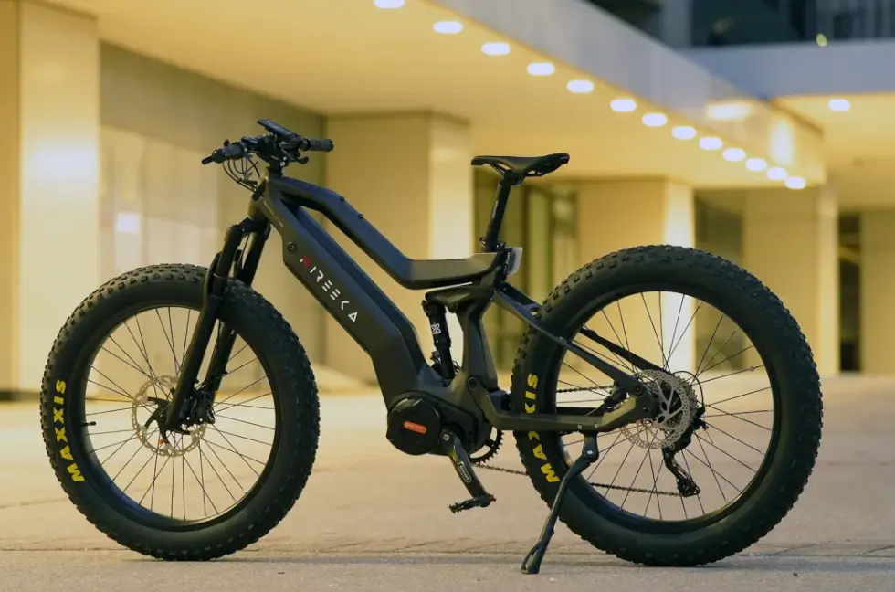 Nireeka claims the Mega can hit a top speed of 38 mph to deliver adrenaline-pumping thrills. Powering its electrical systems is an 840 Wh battery which slots into the beefy downtube and locks into place with a dedicated key. A full charge hints at an approximate range of 52 miles. Finally, the eMTB sports knobby 26” x 4” Maxxis tires.