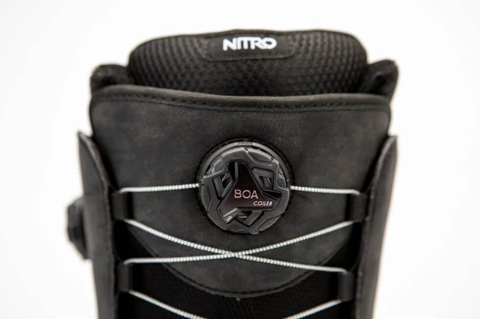 Nitro Snowboards also highlights the Cloud 9 Liner system comprised of pre-molded Thermacell, hi-heel frame, re/lace liner locker, latex memory pads, flex toe, and triple density Ortholite/dual density Ortholite footbeds. Also, as alluded to by the name, the Chase BOA benefits from a dual-zone BOA fit system to really dial in a snug fit.