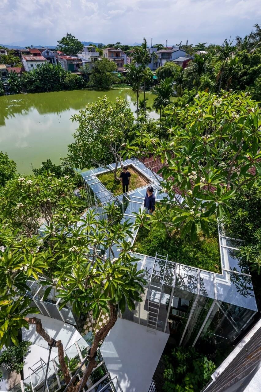 Labri is a glass house in Vietnam designed by local studio Nguyen Khai Architects & Associates (NKAA) . It’s a 55-square-meter home commissioned by a couple for a site nearby a large pond in the city of Hue.