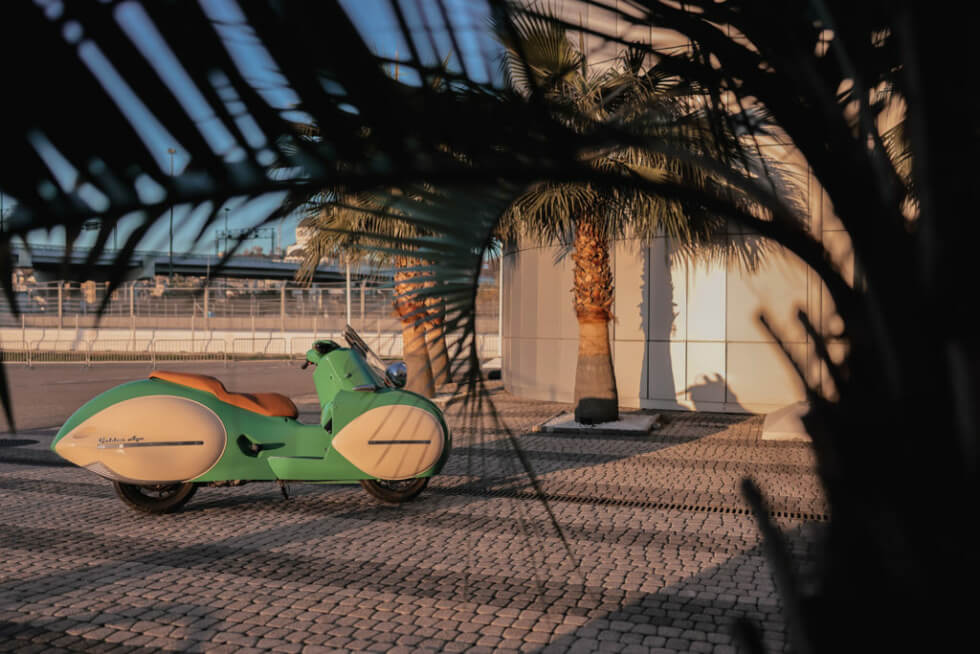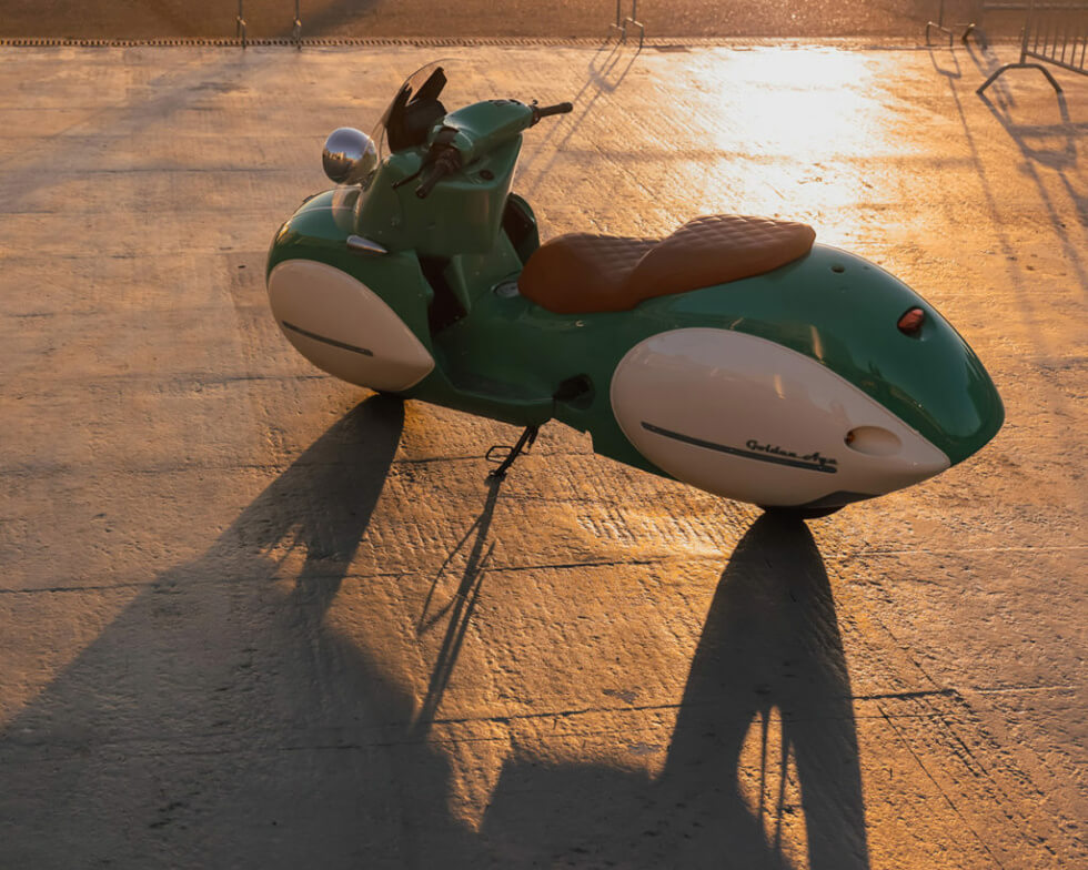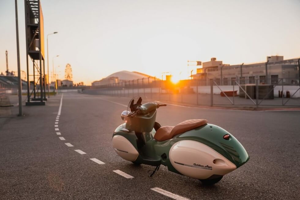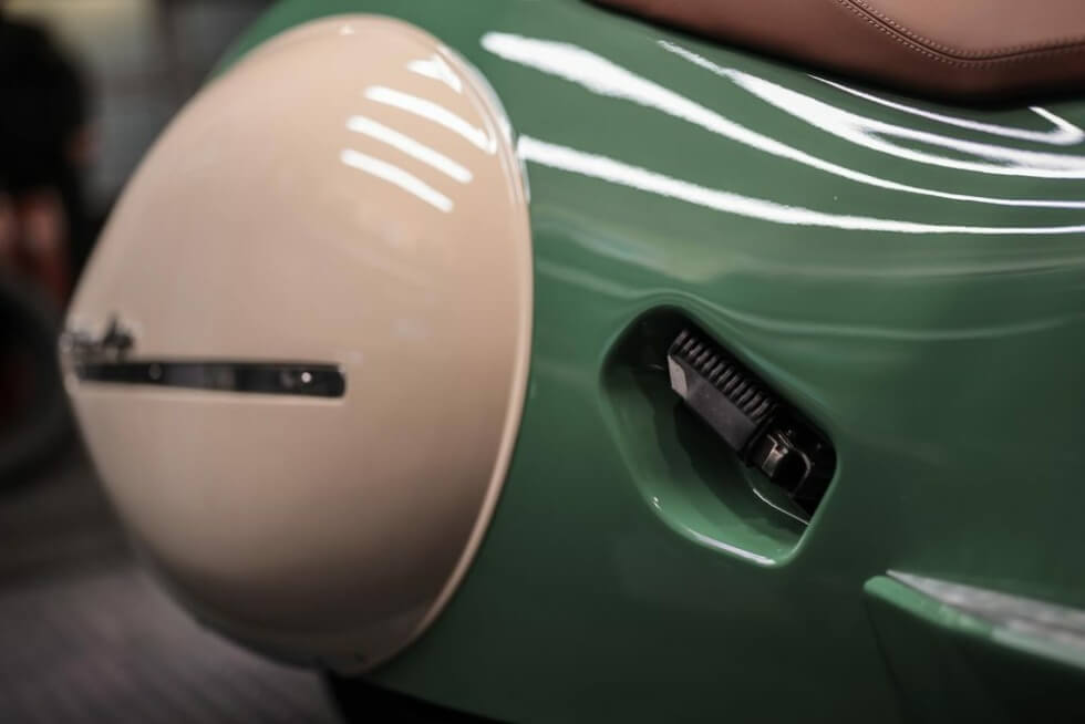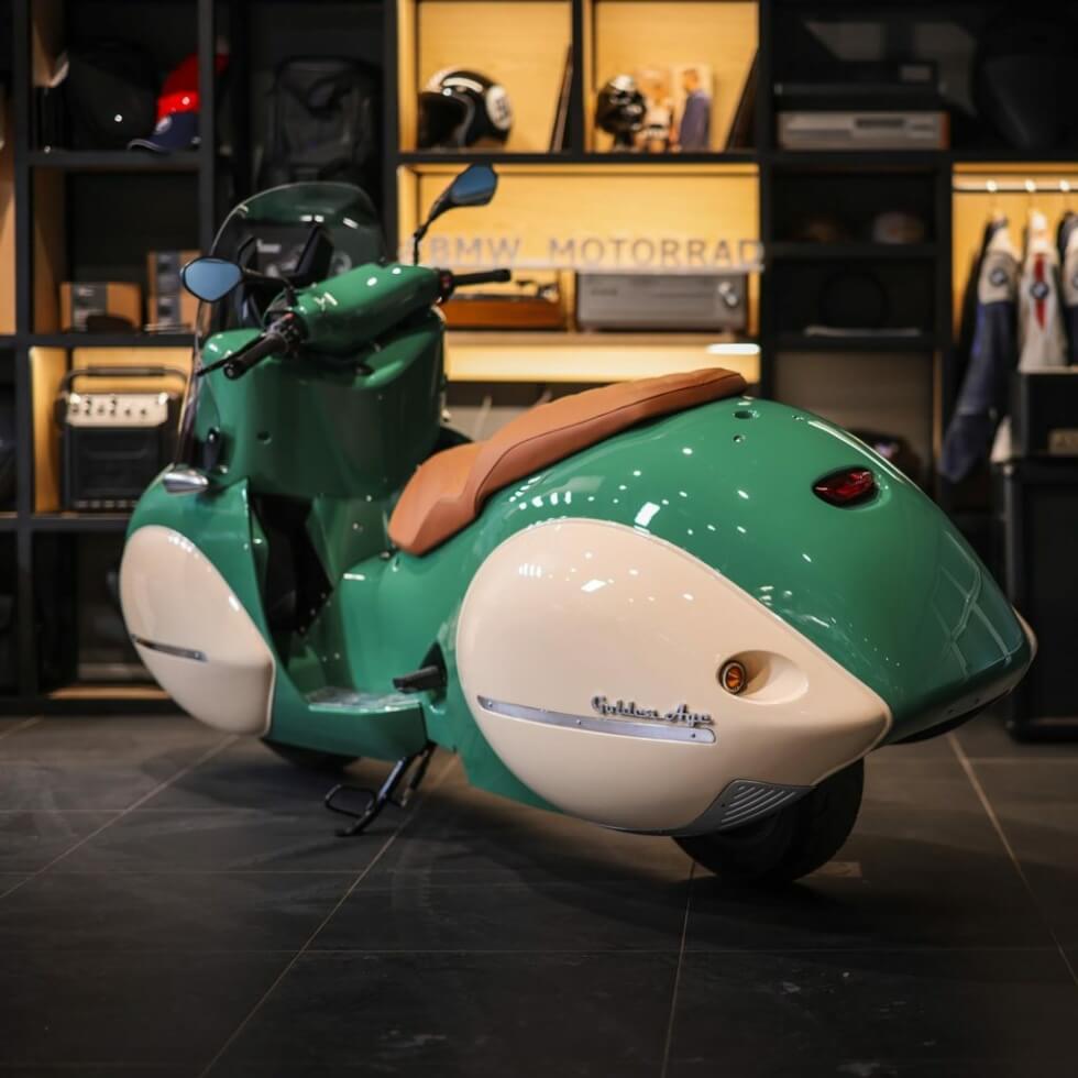We love how they integrate the iconic kidney grilles vertically up front. The body kit is carbon fiber – there’s a total of nine pieces. Depending on the viewing angle, the Golden Age somehow reminds us of Piaggio’s iconic scooter. Nevertheless, its form factor is distinctly different.