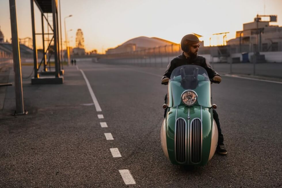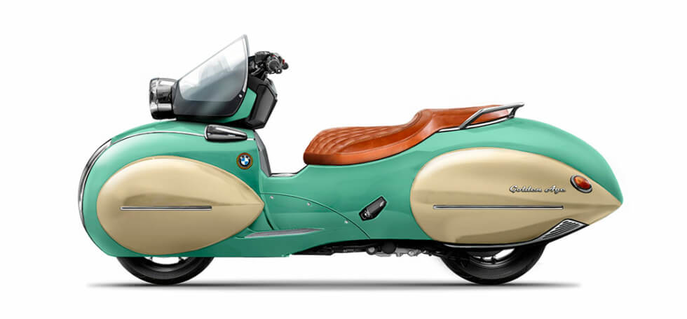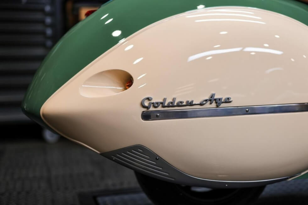 This build takes a BMW C 400 X and overhauls the silhouette into something you’ll find on vintage automobiles of the 1930s. This is one retro ride you’ll want to keep using as its aerodynamic curves begs to be noticed. According to the shop, “the Golden Age channels the 1936 Henderson Courtney Prototype.”