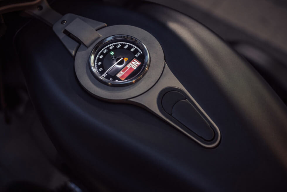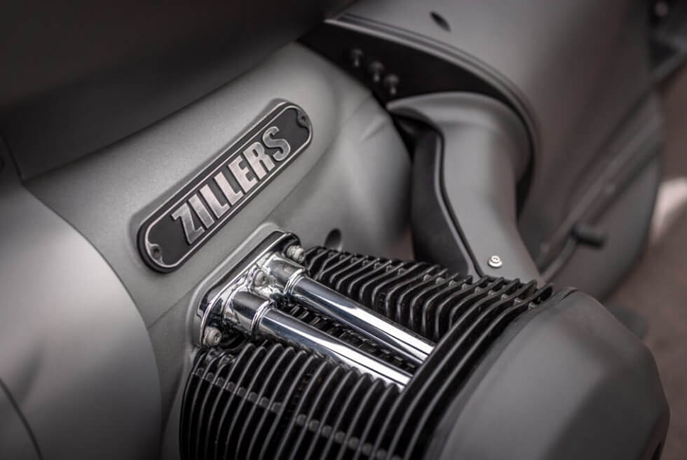 If it seems like something is missing from the handlebars, it’s because the flip-up instrument panel is now on the fuel tank. Similar to their previous works, this BMW R 18 drops the side stand and rests on pegs underneath. What makes this possible is the custom air suspension from Zillers motorcycles.