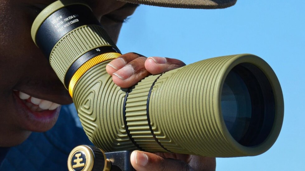 First of all, this spotting scope is available in two colorways: Ochre (yellow/black) and Saguaro (green/black). It is “small enough to bring with you. Powerful enough to see the finest details. The Lite View breaks the mold and lets you get into nature without the steamer trunk.”