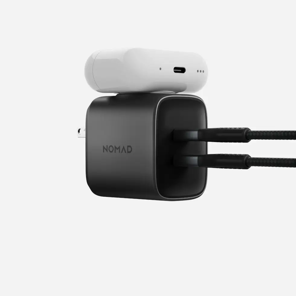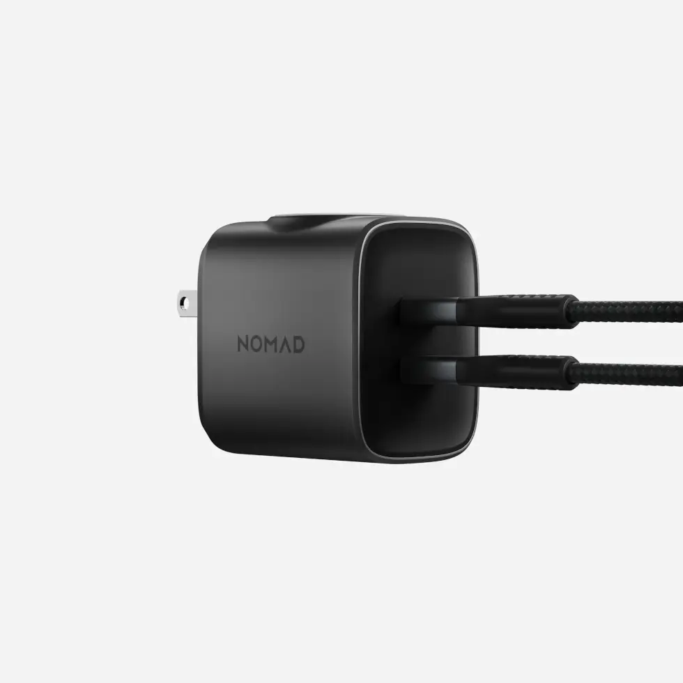 Nomad swears it’s the ultimate 3-in-1 charging solution” as it hosts two USB-C PD ports and an Apple Watch charging puck in a compact design powered by Gallium Nitride (GaN) technology. The USB-C ports share a 65W power, with the top port charging a device at 45W and the bottom at 20W. If charging only one device then it gets the full 65W. Nomad’s ProCharge Power Philosophy ensures proper power output to the device charged in each port.