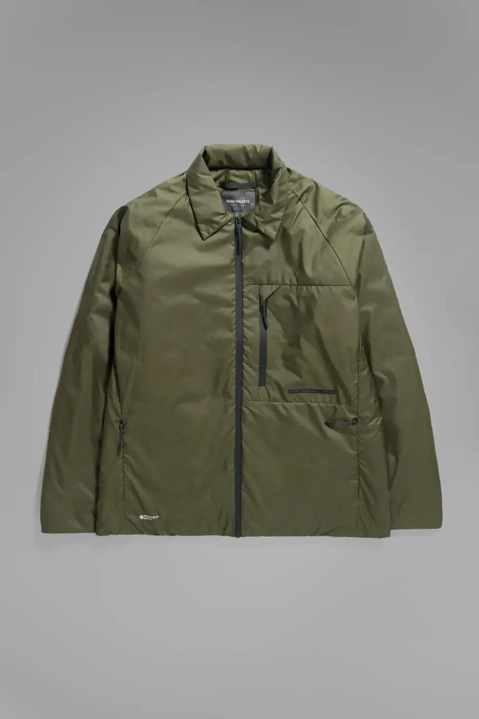 This material is designed to trap still air and improve insulation efficiency. It is 50% recycled and finished with another layer of protection using a PFC free DWR finish to effectively shed light rain and snow. As for thermal insulation, Norse Projects’ Pertex Quantum Midlayer Shirt uses Thermolite EcoMade insulation.