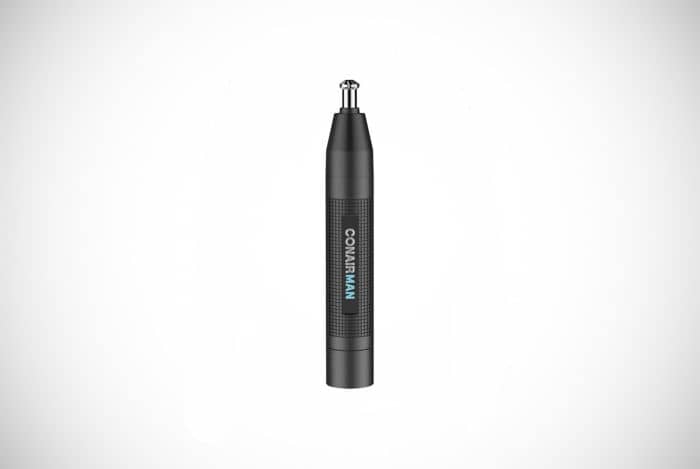 Next up is the Conair Ear and Nose Hair trimmer for men. This trimmer has made our buyer guide because it does the basics right, but also has an innovative twist that makes trimming your ear and nose hairs quicker. The device is small and convenient for your traveling washbag – and unlike many of the other models, it comes supplied with an AA lithium battery to give you months, if not years, of use.