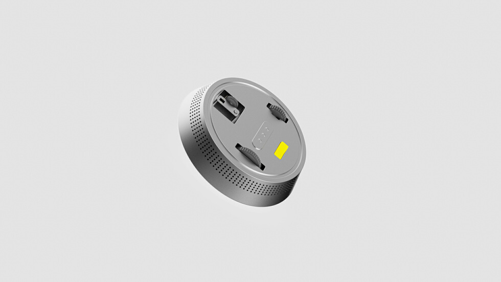 Even without an explanation of what it can do, the renders tell us this is an audio device. It resembles a sleek metallic conference speaker with an almost tonal motif save for the vibrant yellow Ai mode button, volume slider, and switch. Likewise, perforations near the right edge and just below the digital display form the grille.
