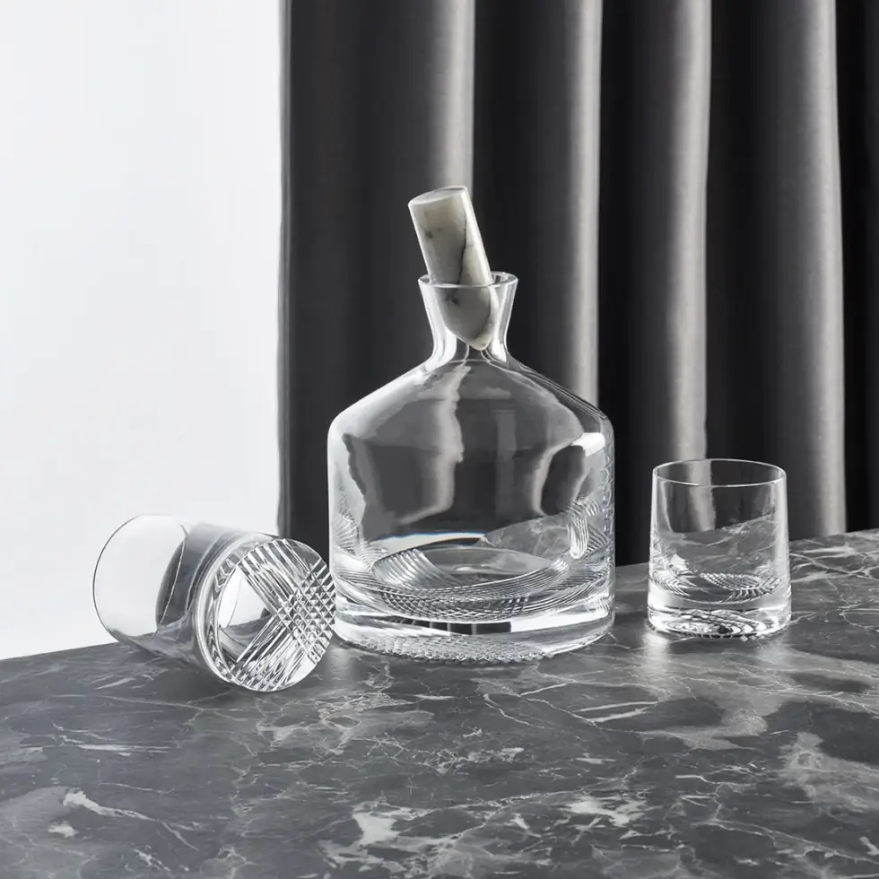 Moreover, the carafe tapers towards the brim to ensure the preservation of the aroma and flavor of your favorite drink. Adding to its elegantly beautiful aesthetic is the circular marble stopper that slightly tilts in the neck.
