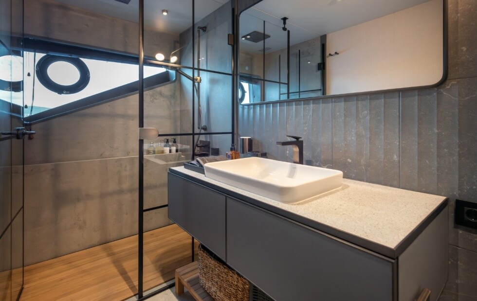 However, the Turkish group presents this new hull as something truly special. Before we get into that, the rest of its technical specifications list a 24.5-foot beam and a 5.90-foot draft. Instead of steel like the rest of the lineup, the 30XP boasts an FRP Composite hull and superstructure.