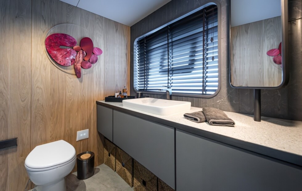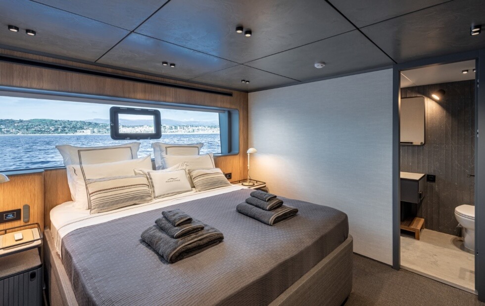 Finally, we have the lower deck which holds two VIP cabins, two guest cabins, and the crew cabins as well. A large garage can store water toys or a tender depending on the client. Then there is the aft beach club with folding terraces and a swim platform. The 30XP is a versatile option if you want an eco-friendly leisure watercraft.