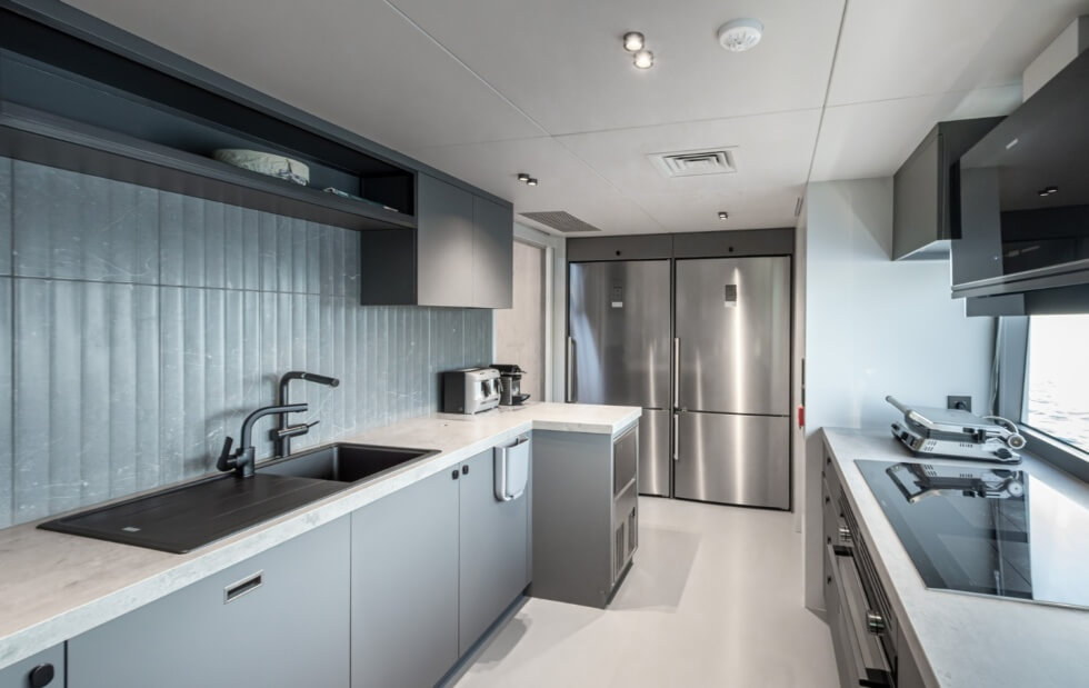 With a tank capacity of 19,000 liters, you can travel up to 3,500 nautical miles before it needs to refuel. Clients can also commission their 30XP with a diesel-electric propulsion system comprised of two electric engines with four 108 kW generators.