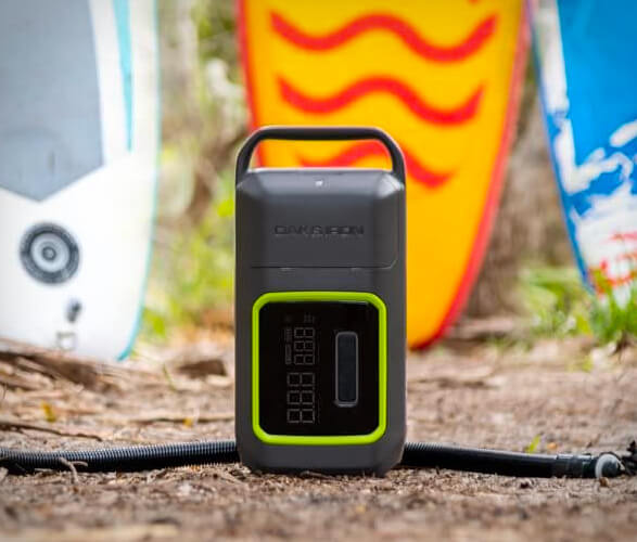 The Oak & Iron Wave Pro Electric Pump also features a 6.5″ screen (larger than iPhone 14 Pro) that provides real-time information including battery life and pressure monitoring up to 0.1 Psi. Speaking of the battery, this pump runs on a rechargeable 6,000mAh battery that can fill up three paddle boards at once on a single charge without overheating thanks to its active cooling system.