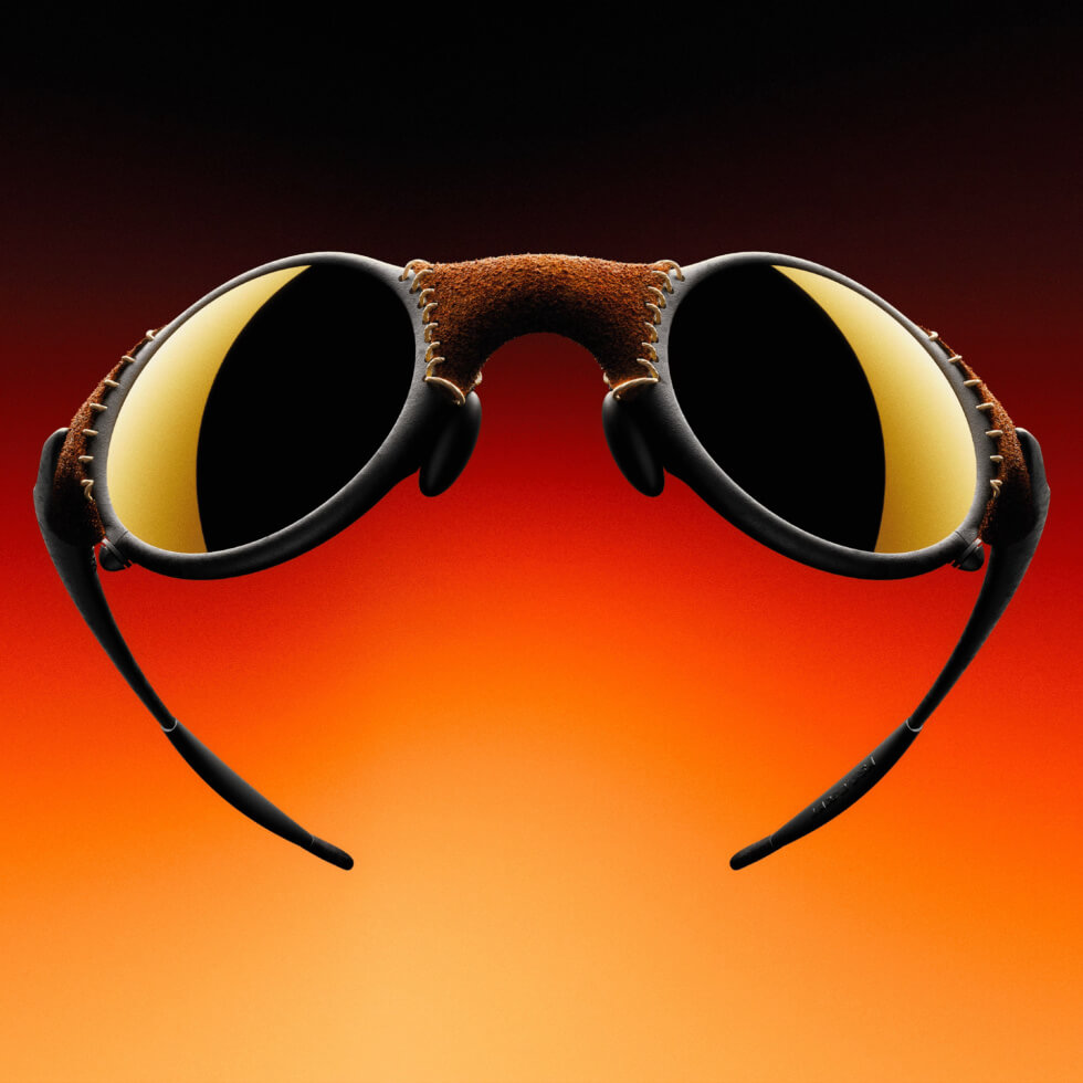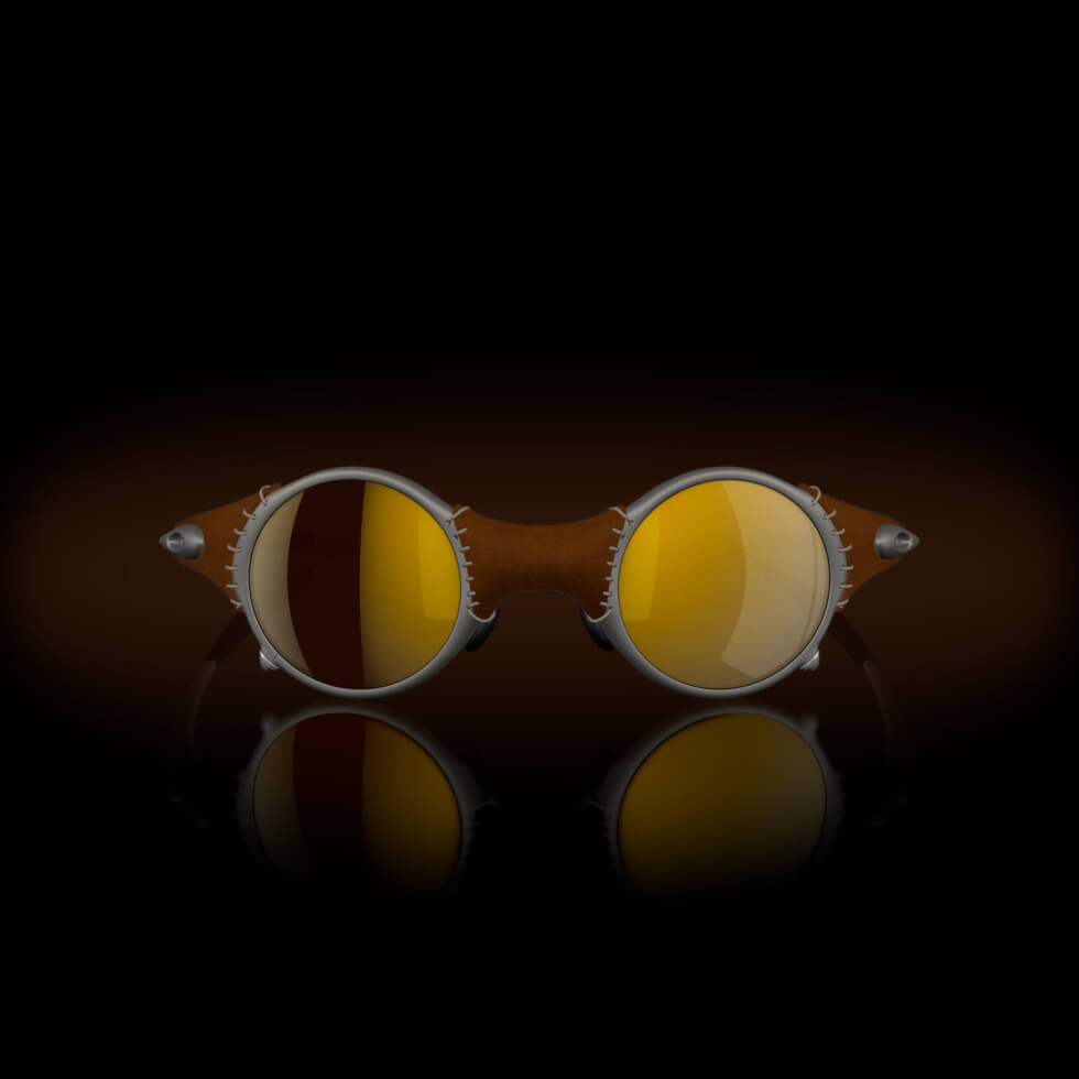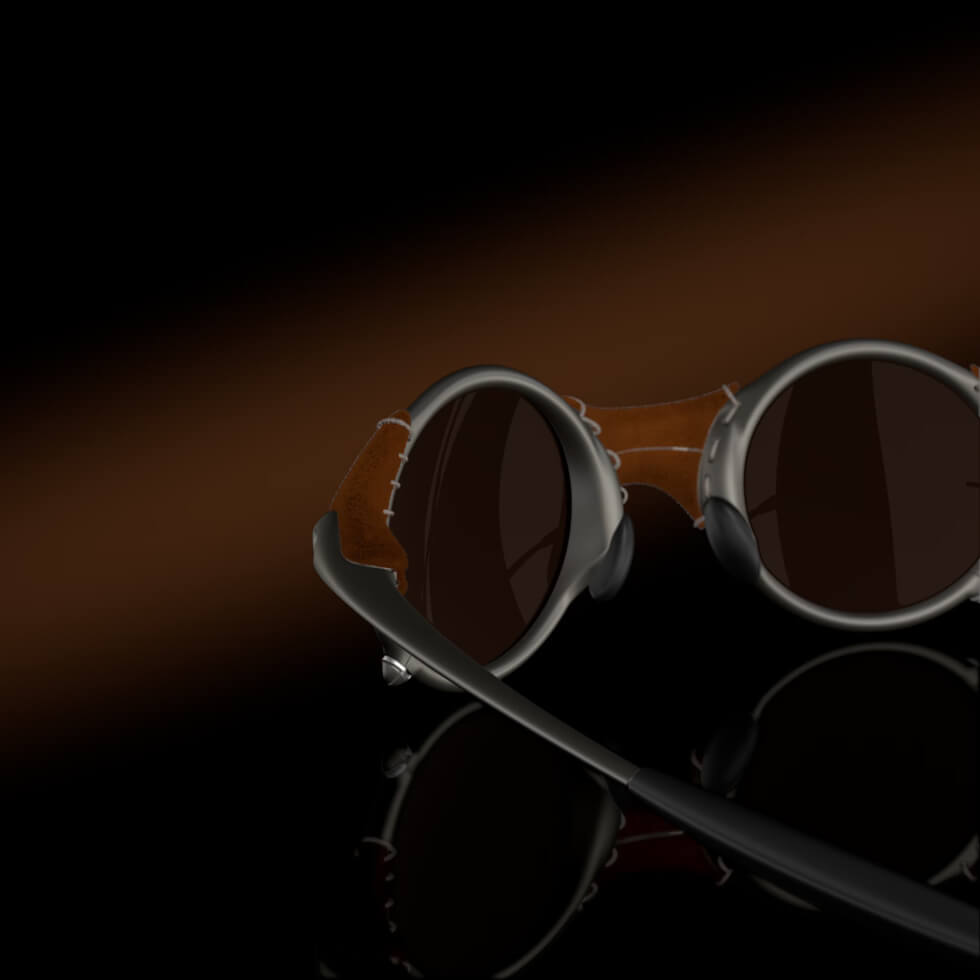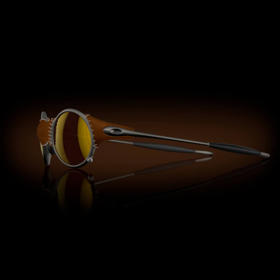 It was no easy feat to modernize the MUZM Mars X-Metal Leather glasses to fit this generations’ varied style standards. According to Oakley, it took a six-tone generator with 425,000 watts of power just to push the five-axis machining that maintained a .0005″ precision to create the out-of-this-world X Metal frame.”  X-Metal material is an Oakley proprietary titanium alloy created in 1997.