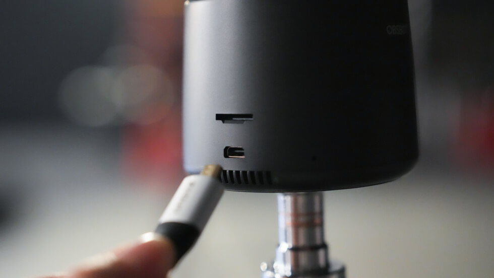 Design-wise, it’s a sleek device with a cylindrical base that gradually tapers on top. OBSBOT lists the dimensions as 66.65 mm x 73.25 mm x 132.5 mm with a weight of approximately 344.5 grams. The compact form factor makes it easy to transport one or more of these bad boys.