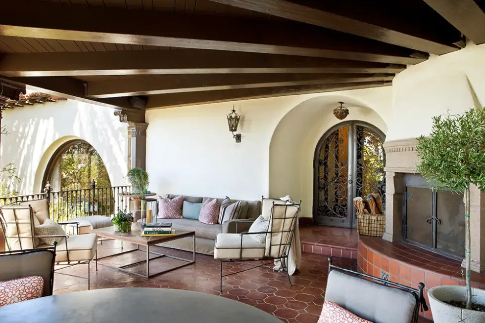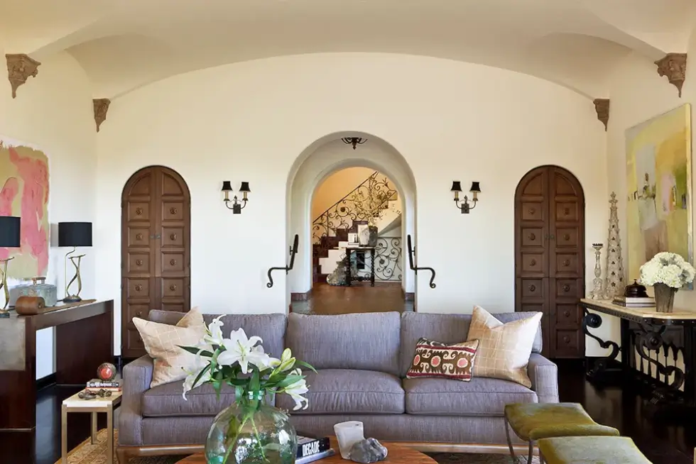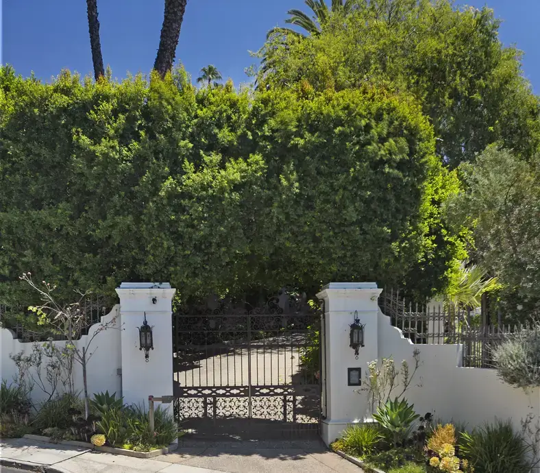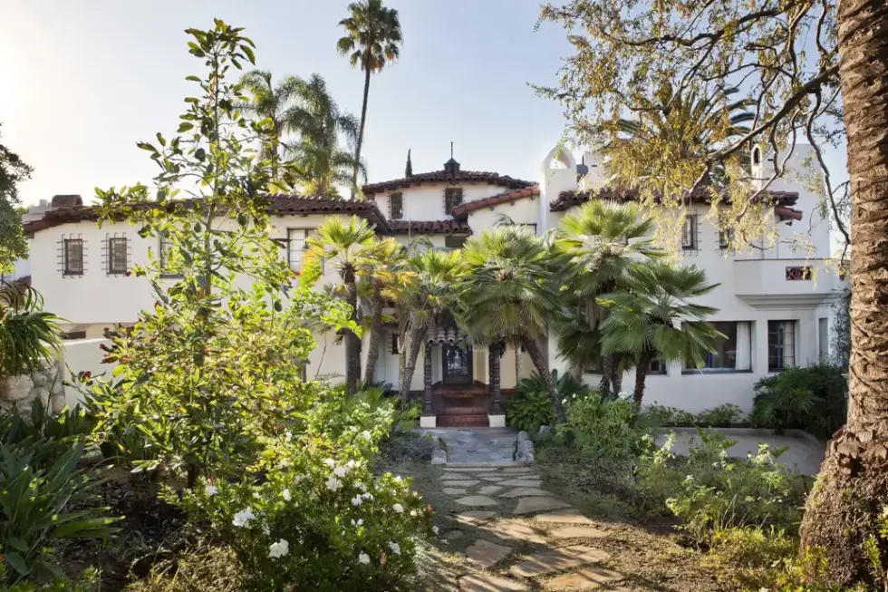 Nestled behind elegant gates, the Oliver R. Fuller Estate hosts six bedrooms and 12 bathrooms. It was designed by Harry Hayden Whiteley, AIA, as a “retreat transcending time and a sanctuary capturing the essence of Southern California living.” It boasts across a little more than 11,000 square feet of interior space with the Baronial step-down living room finished with hardwood floors, an ornate fireplace, and French doors that lead to a balcony overlooking the pool, spa, and the city below.