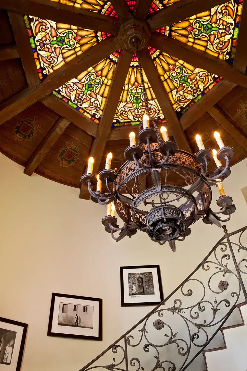 The Oliver R. Fuller Estate is a testament to an era of architectural splendor. This Spanish Colonial Revival home was built in 1929 and although it underwent restoration and updates, it retained some of its decades-long structural elements. These include vintage chandeliers, stained-glass ceilings, and a sweeping wrought-iron staircase in the soaring rotunda entry foyer.