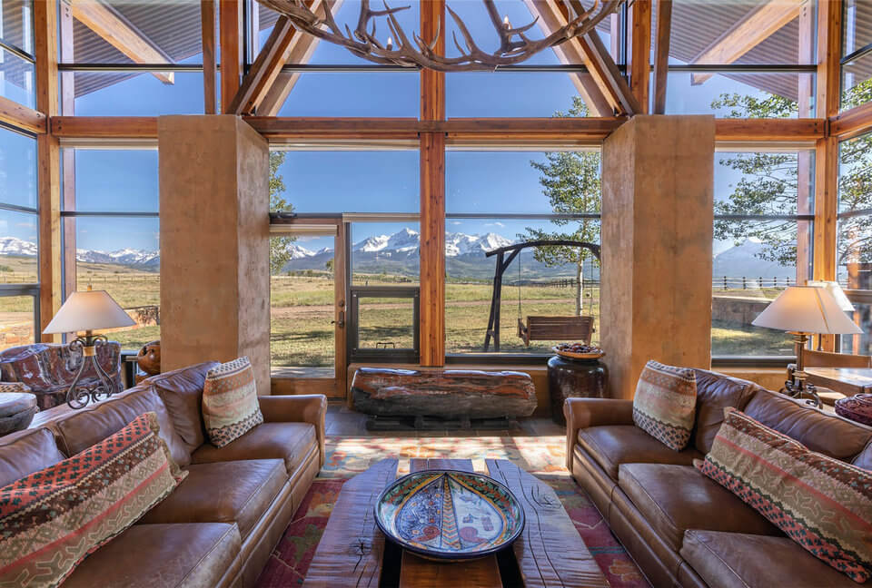 This Colorado Ranch originally designed for filmmaker Oliver Stone boasts a massive 15,000 square feet of interior space. It sits on 1,418 acres of land in one of Colorado’s most scenic settings of the Mt. Wilson massif.