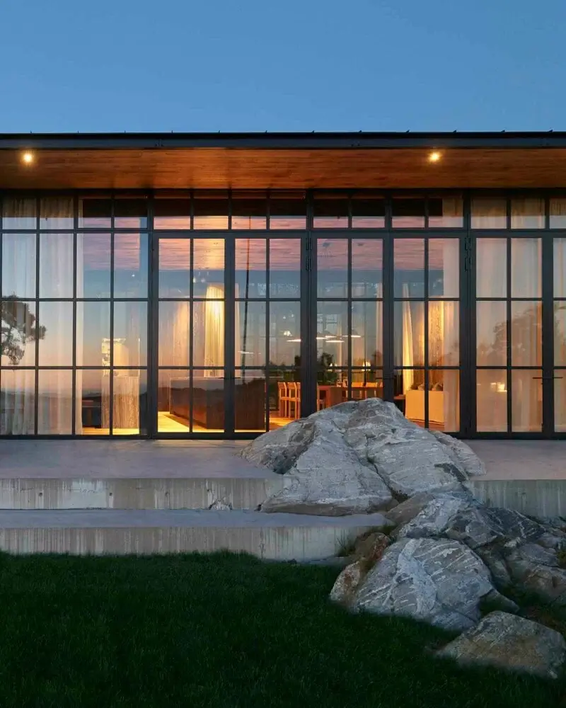 Seattle and New York-based architecture studio Olson Kundig embraced the natural terrain in the construction of the property. Some parts of the house are meticulously embedded into an outcropping of granite, with the hardscaping elements encircling and intersecting with this rock formation.