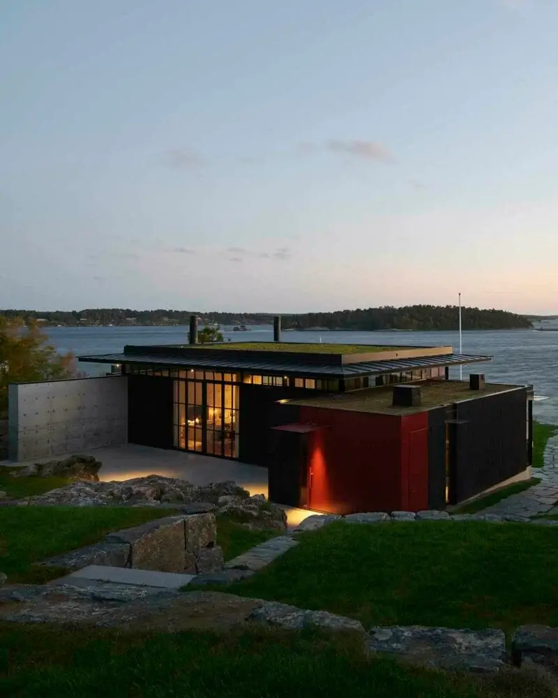 The team extensively incorporated natural elements to emphasize its connection to the landscape. The exterior of the Dalarö House features pine siding with a traditional and authentic Scandinavian finish. A green roof adds a touch of greenery to the home.