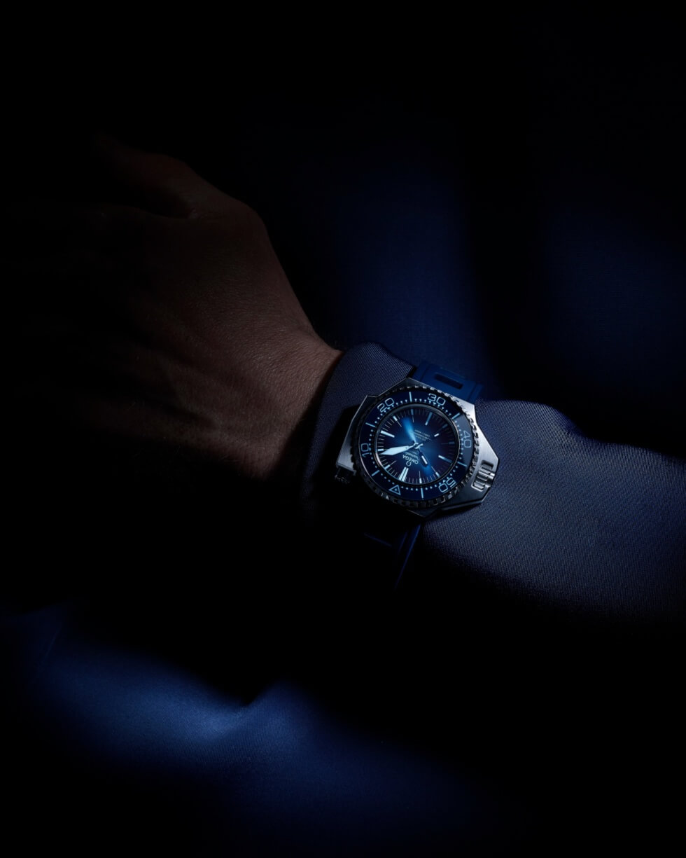 An in-house OMEGA 8912 self-winding caliber governs its timekeeping functions with a reliable 60-hour power reserve. In line with its chromatic theme, the Summer Blue Ploprof ships with a blue rubber perforated strap and a steel pin-buckle closure. Finally, this is not a limited-edition run so take your time and pick the Seamaster that suits your style.