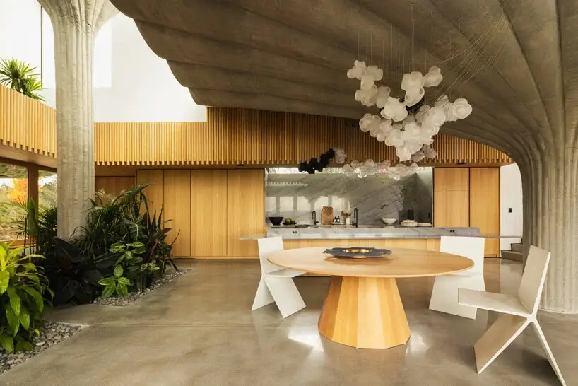 These curved walls provide access to the interior spaces and facilitate movement across the volumes. Arbel came up with this innovative idea for the home’s structure after an experiment using concrete poured over fabric that’s been stretched between lightweight plywood ribs, which resulted to the creation of fabric-formed columns.