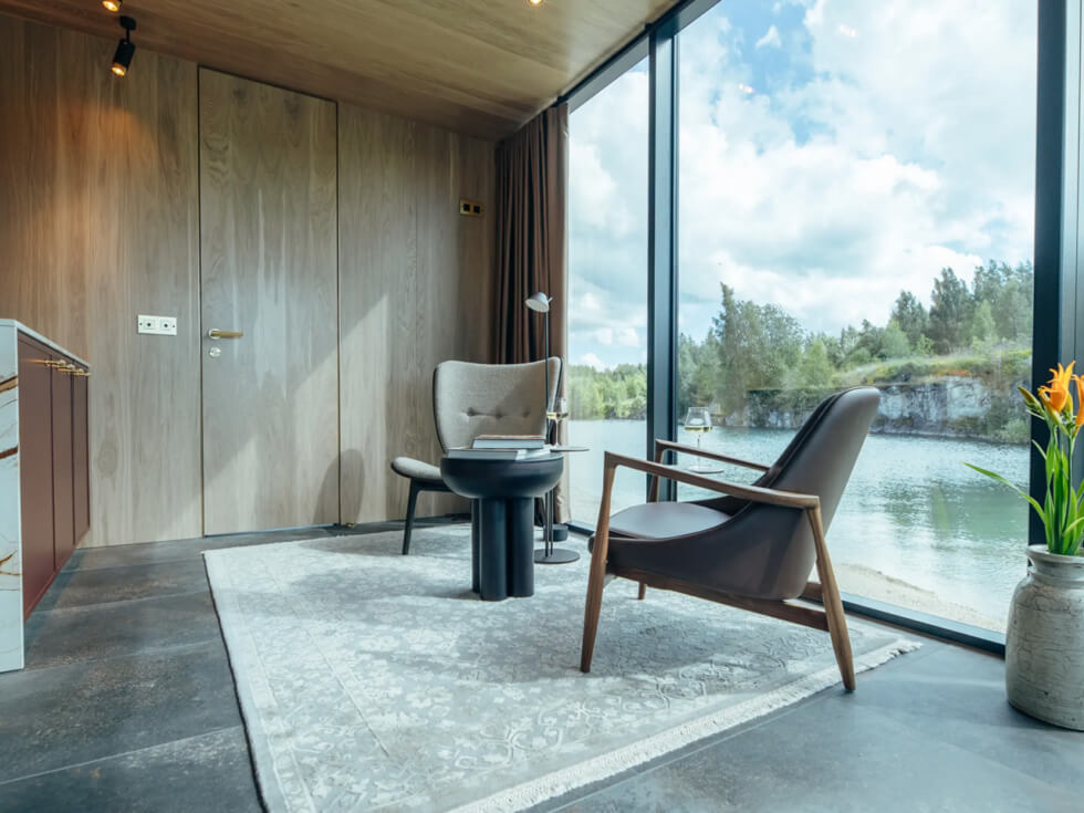 Weighing 15 tons, the Golden House is a true plug and play ready for use as soon as it arrives at its location. Simply connect to electricity, sewage, and water, and you’re good to go. It can also be equipped with solar panels for off-grid living.
