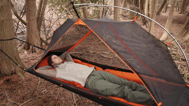 If your love for the outdoors transcends to sleeping above ground or suspended between trees, then Opeongo’s AERIAL A1 Tree Tent is the way to go. This is a versatile camping solution that works great on any terrain even above water.