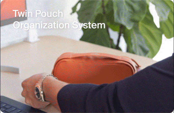 The clever twin pouch organization lets you store essentials with ease. The detachable inner storage serves as a separate desk pouch for your most-used items for quick access. It features an integrated fold-down front panel so you can easily find what you need so you don’t have to dig around inside the pouch. It offers one pen loop, three mesh pockets, and five elastic loop compartments.