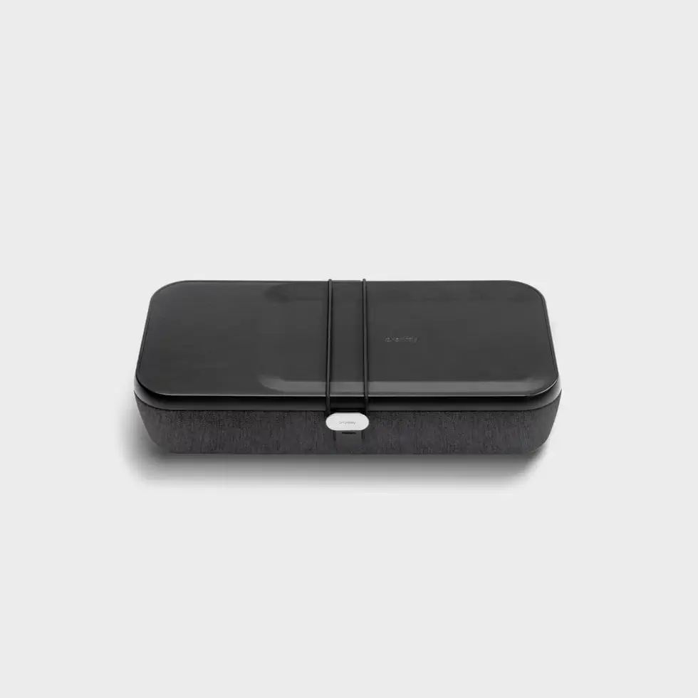 The Orbitkey Nest V2 assures quick charging times. Just connect it to a power source and place your device on the left side of the top of the lid for effortless charging.  It also comes with a USB-C power input and a USB-C to USB-A braided nylon power cord.